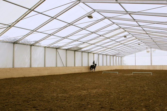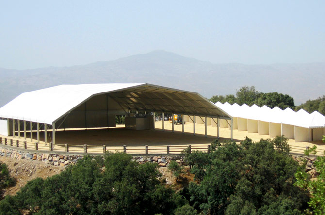 Nuestras carpas a dos aguas reforzadas son la opción ideal para cubrir tu picadero o ampliar tus instalaciones con un coste muy inferior al de la construcción tradicional.